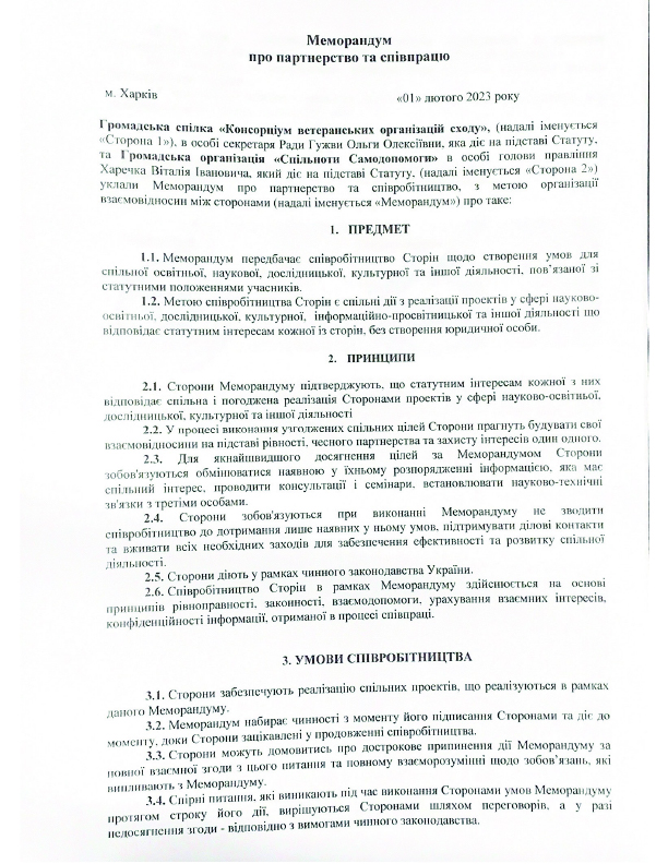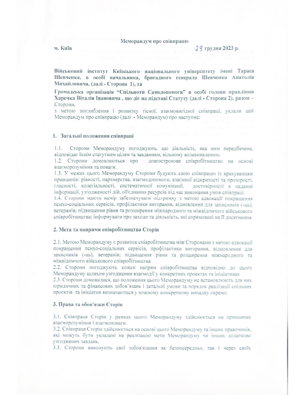 The NGO "Community Self-Help" advocates for the medical and psychological component of the "Veteran's Journey Map"; implements scientifically based, internationally recognized advanced methods of psychological assistance in Ukraine; provides medical support to Hospitals and Defenders of Ukraine; writes stories using the method of Olga Onyshko (USA, Washington) "StoryCreation: My Story - My Power" and the technique of "Oral History" by Alina Doboszewska (Dobra Wola Foundation, Krakow Poland).
